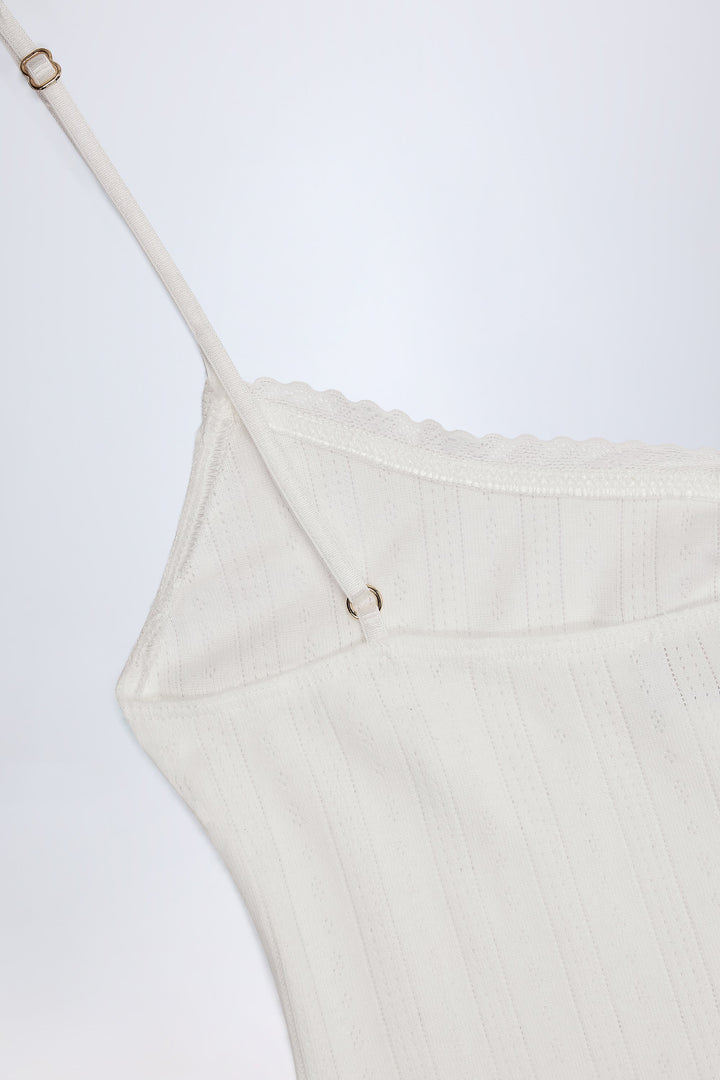 Beyaz Pointelle Büzgülü A Kesim Mini Elbise