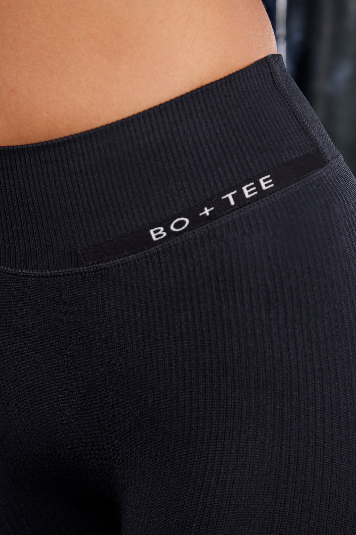 Siyah Yüksek Bel Bölünmüş Flare Kaburga Tayt