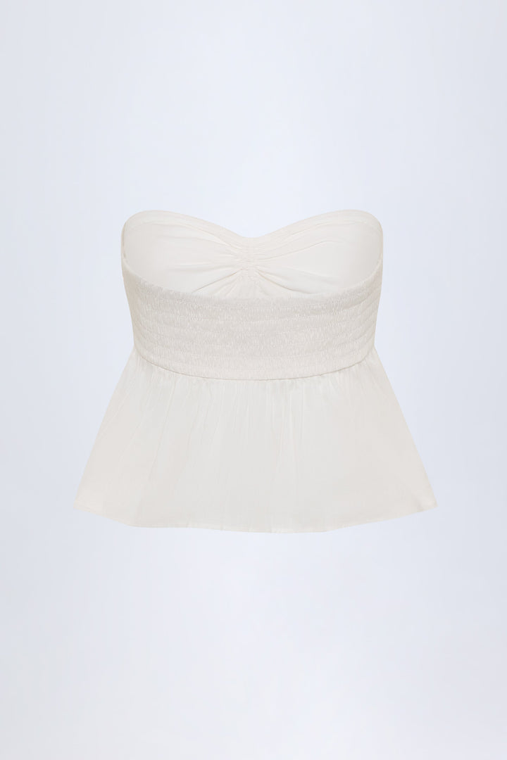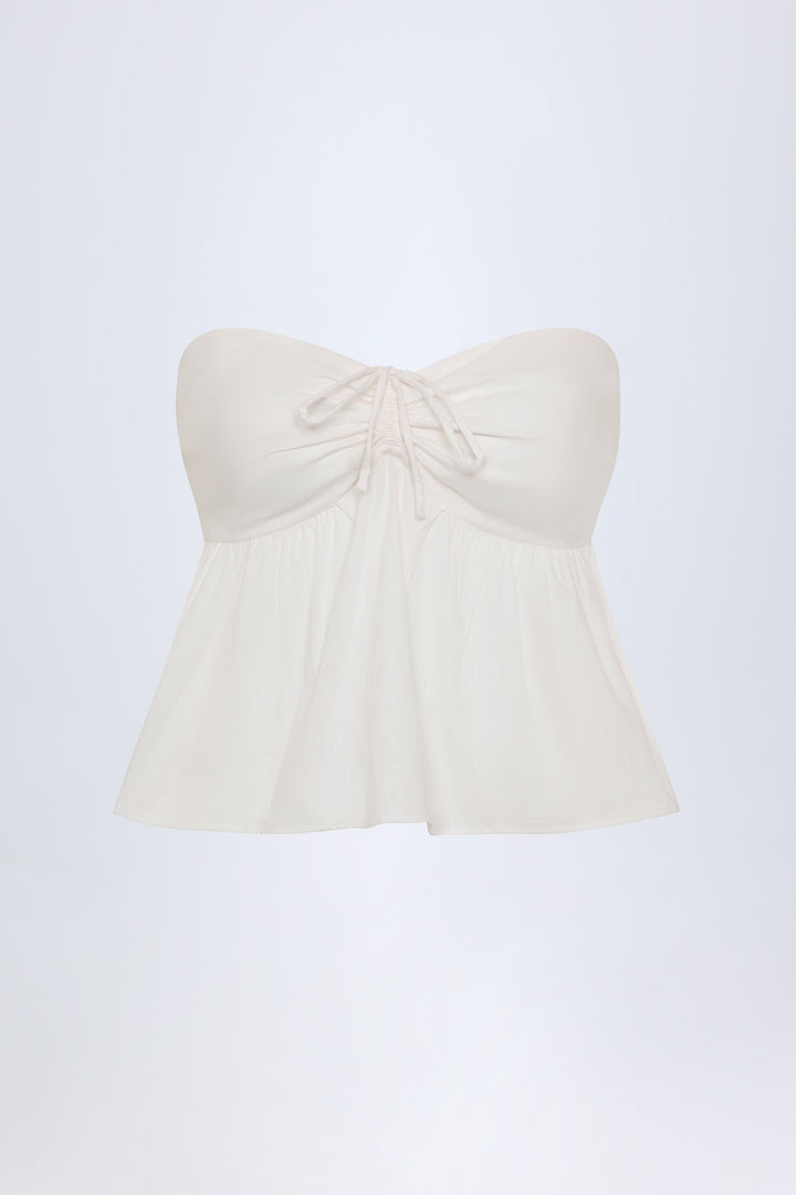 Beyaz Önü Bağcıklı Askısız Pamuklu Poplin Kısa Üst