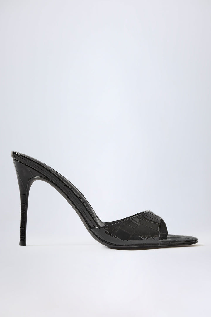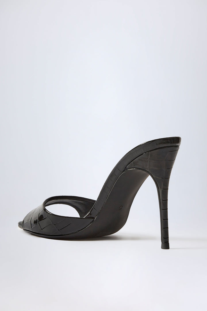 Timsah Patent Siyahı Badem Burunlu Topuklu Terlikler