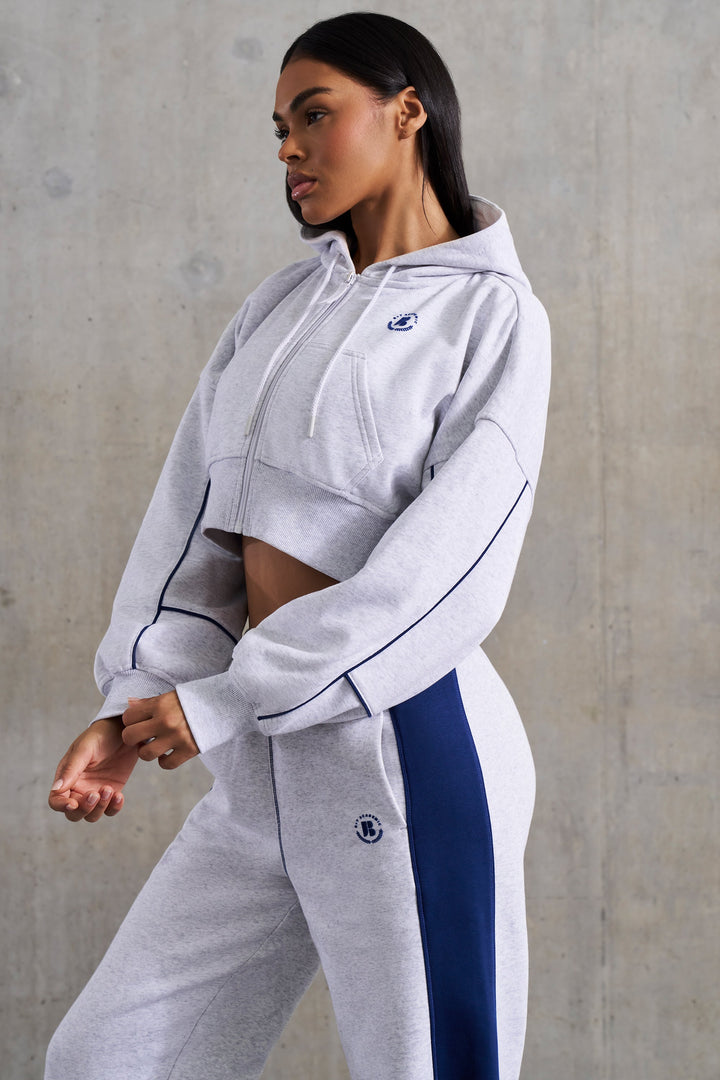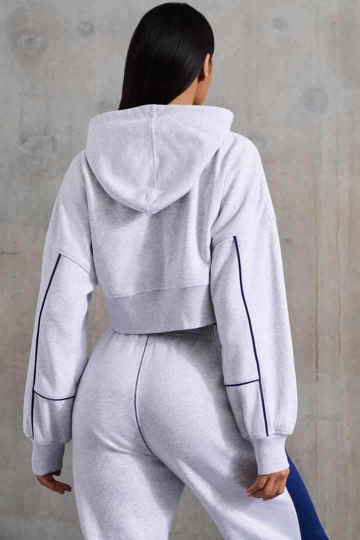 Heather Grey Waffle Astarlı Kırpılmış Fermuarlı Kapüşonlu Ceket