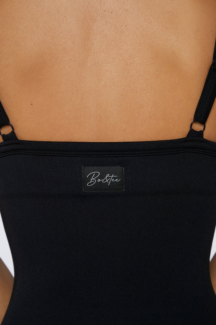 Siyah Yuvarlak Yakalı Unitard