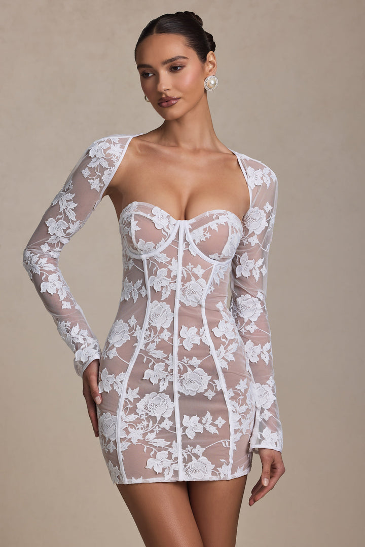 Beyaz Dantel Detaylı Korse Mini Elbise