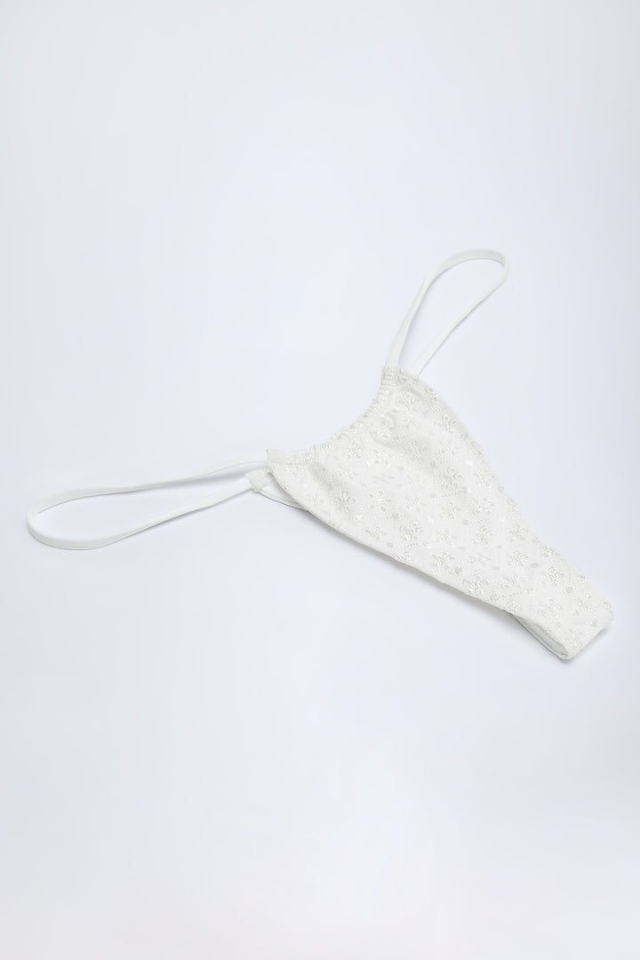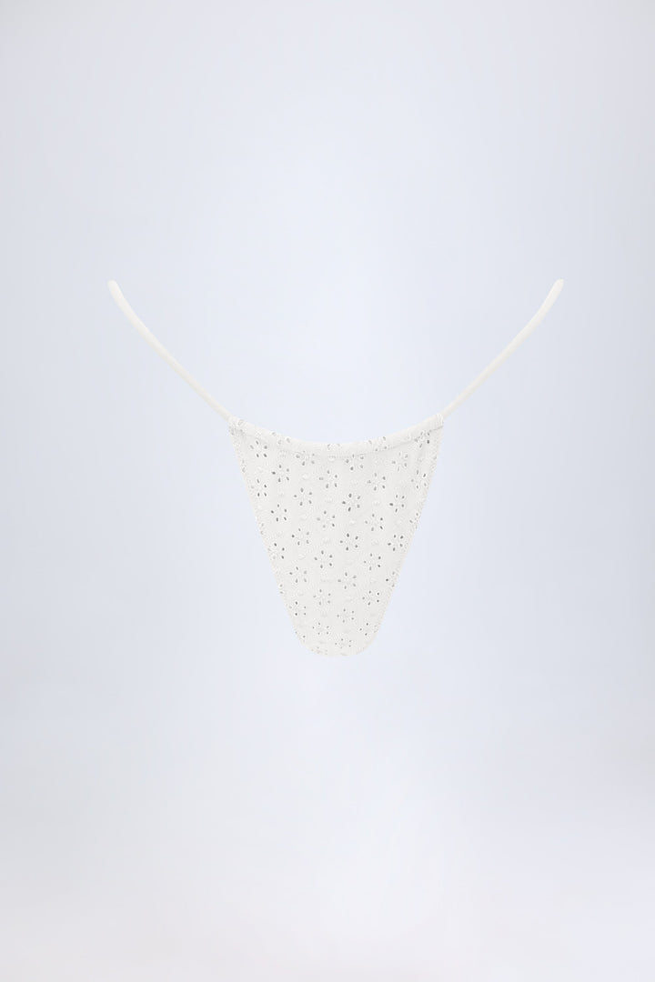 Beyaz Broderie Anglaise Bağcıklı Bikini Altı