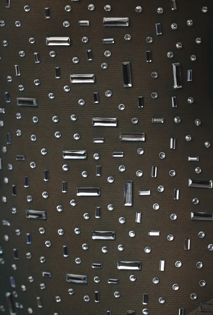 Zümrüt Rengi Şeffaf Süslemeli Yuvarlak Yakalı Gece Elbisesi