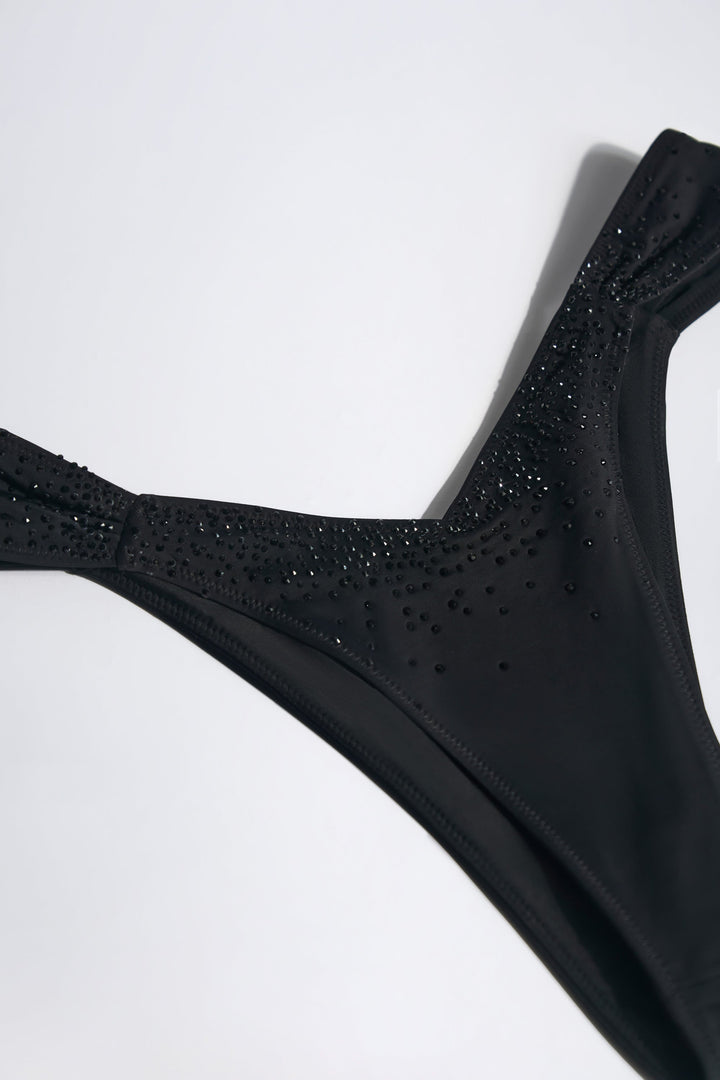 Siyah Renkli Süslemeli Büzgülü Bikini Altı