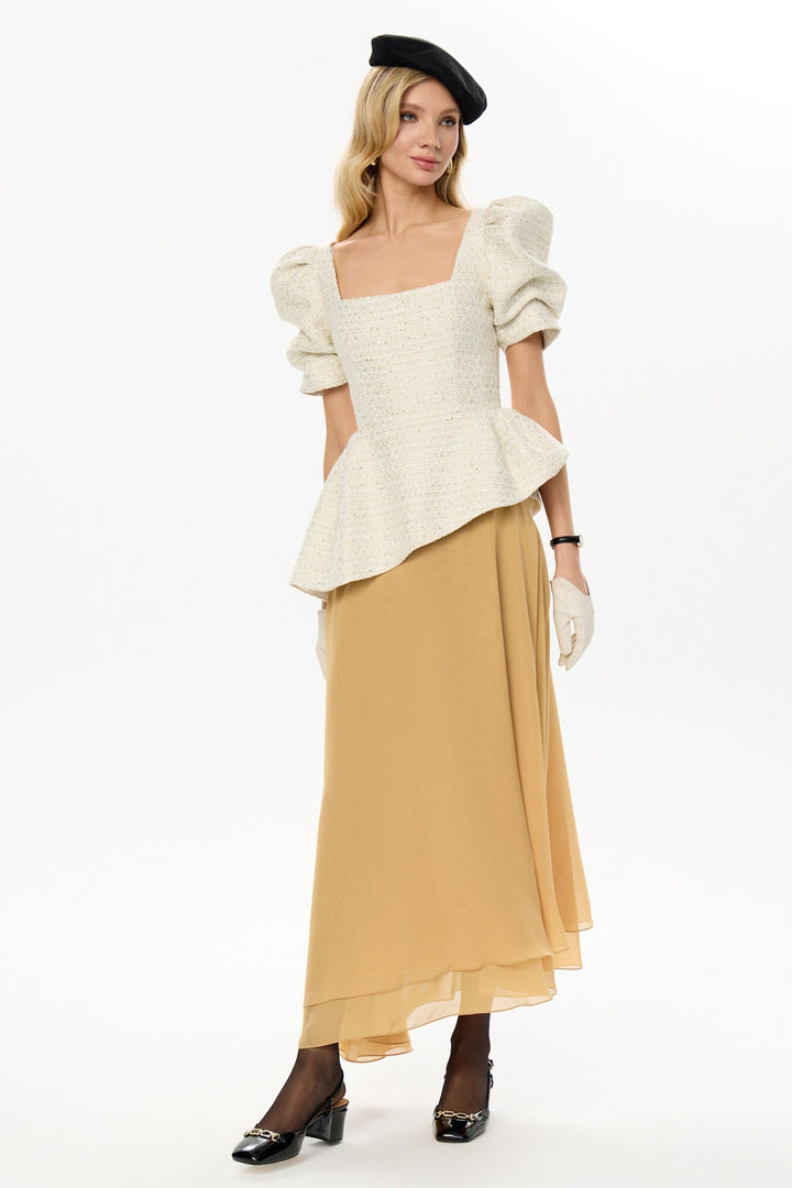Asimetrik Şifon Midi Etek