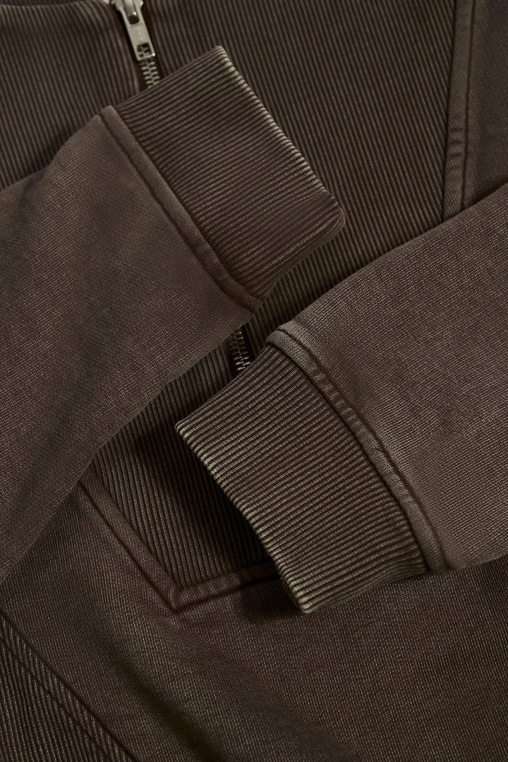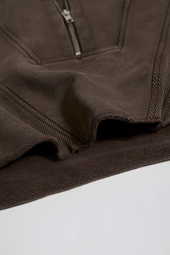 Kahverengi Asit Yıkama Kısa Sweatshirt