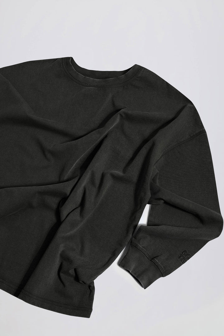 Asit Yıkama Uzun Kollu Büyük Boy Kül Rengi Tişört