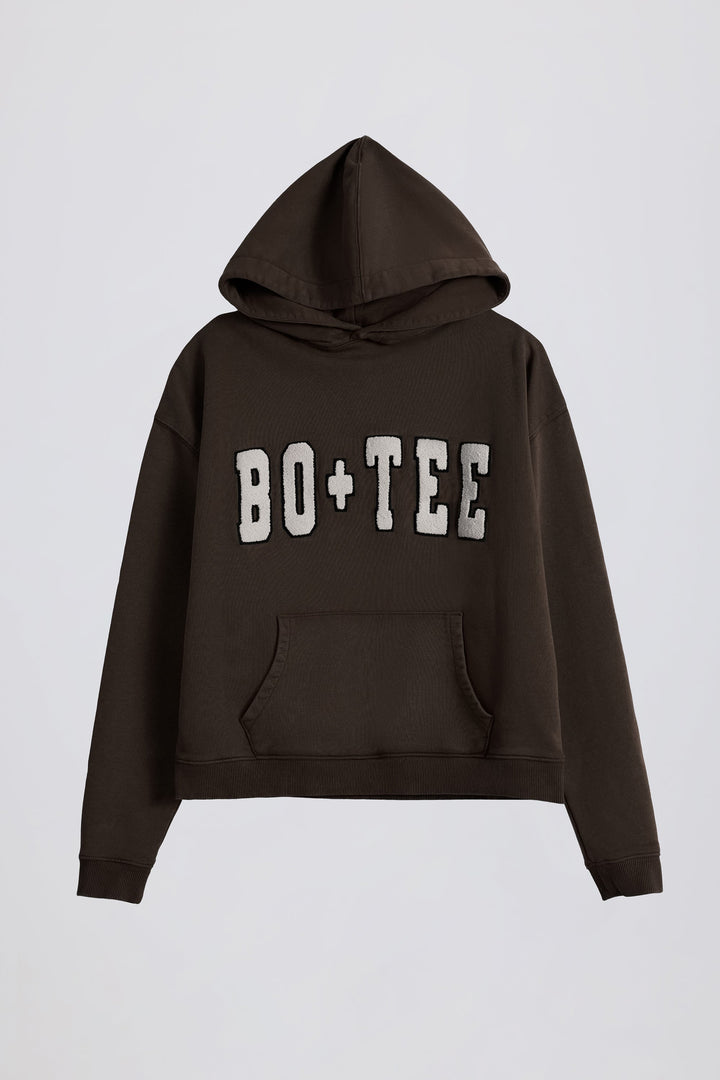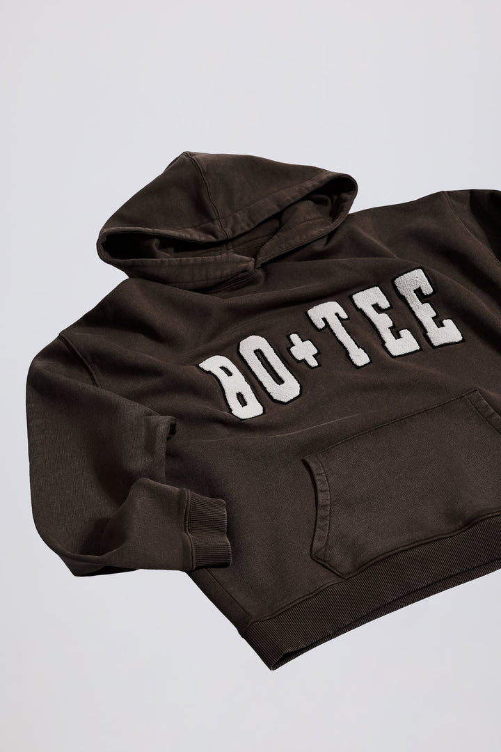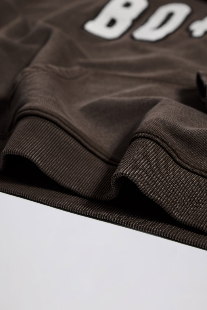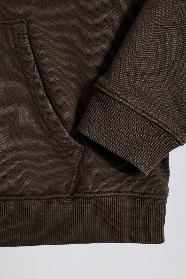 Kahverengi Asit Yıkama Büyük Boy Kapüşonlu Üst