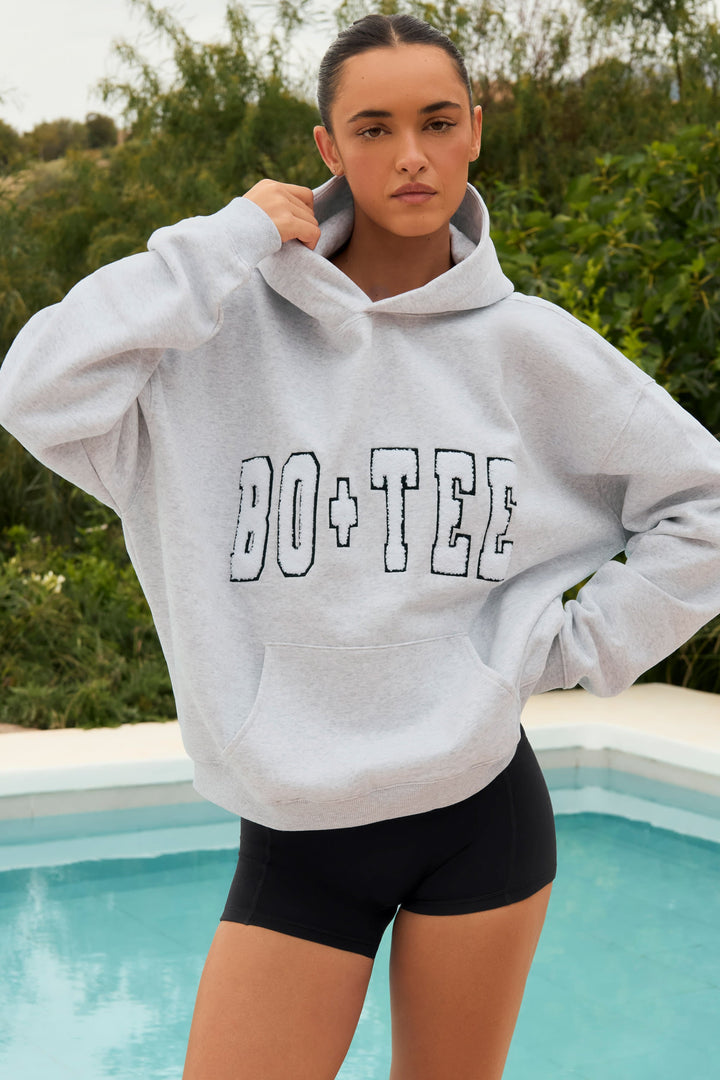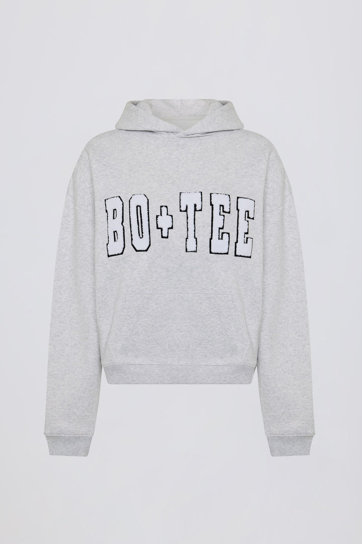 Heather Grey Aplikeli Büyük Boy Kapüşonlu Üst