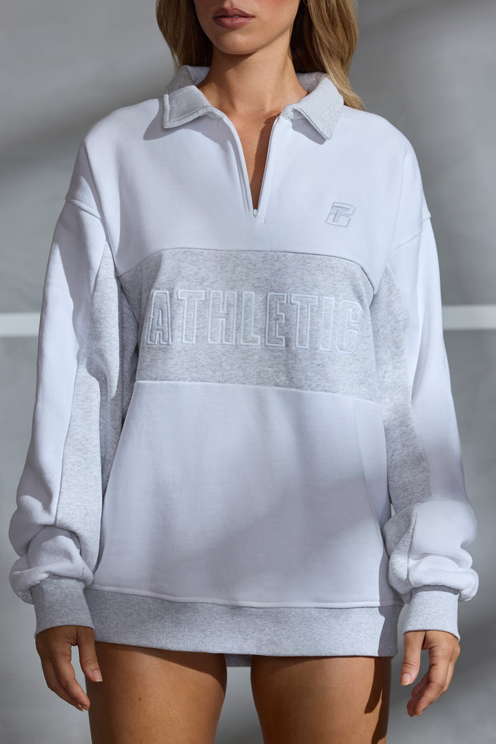 Beyaz Büyük Boy Yarım Fermuarlı Panel Sweatshirt