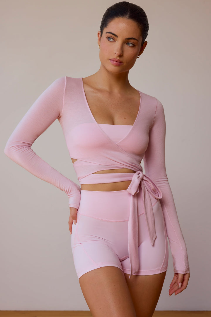 Açık Pembe Uzun Kollu Sarma Kısa Üst