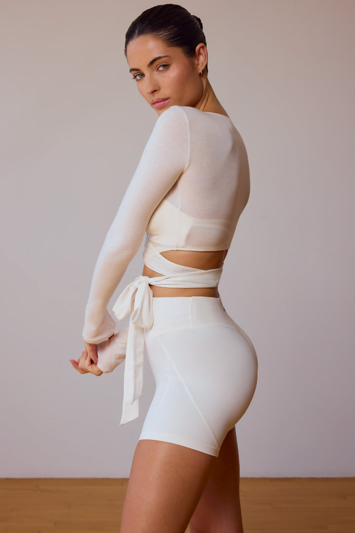 Yumuşak Beyaz Uzun Kollu Sarma Kısa Üst