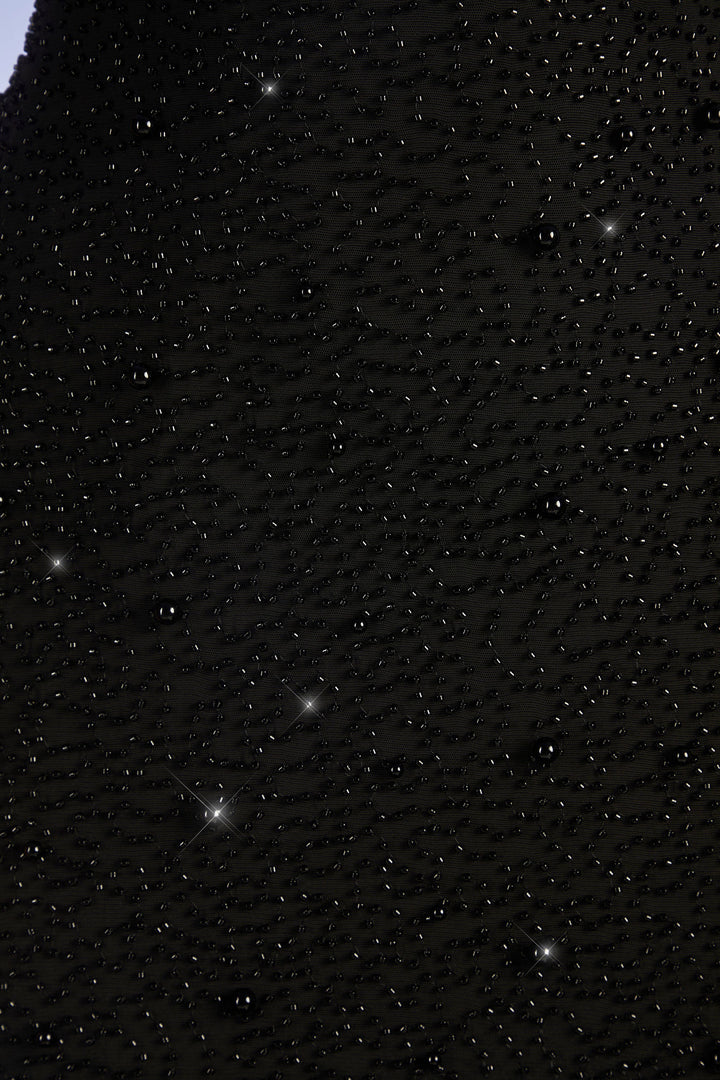 Siyah Süslemeli Bandeau Uzun Elbise