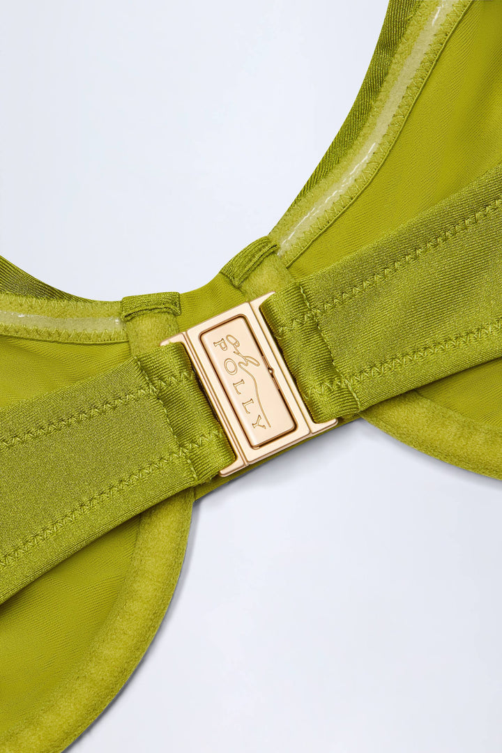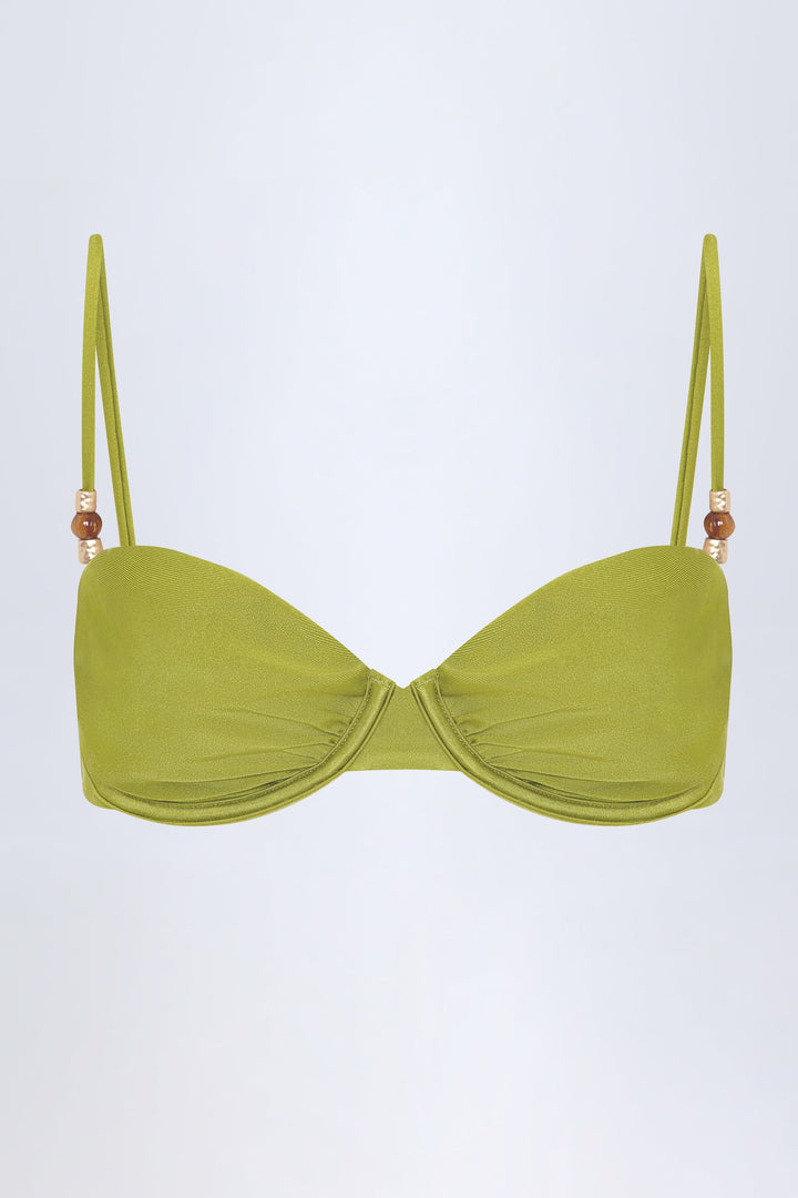 Zeytin Yeşili Boncuk İşlemeli Büzgülü Balenli Bikini Üstü