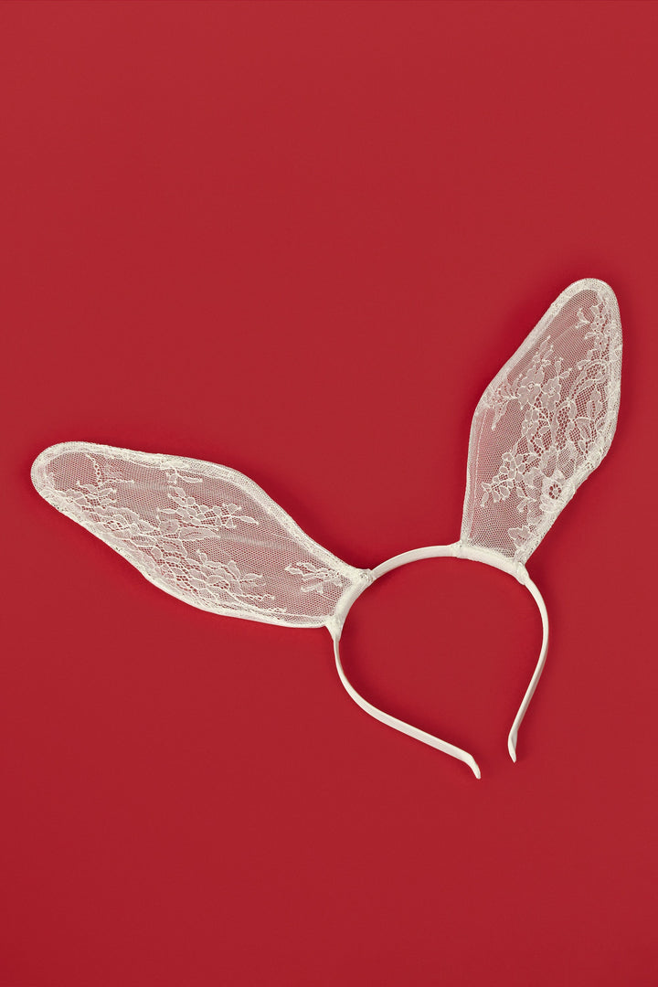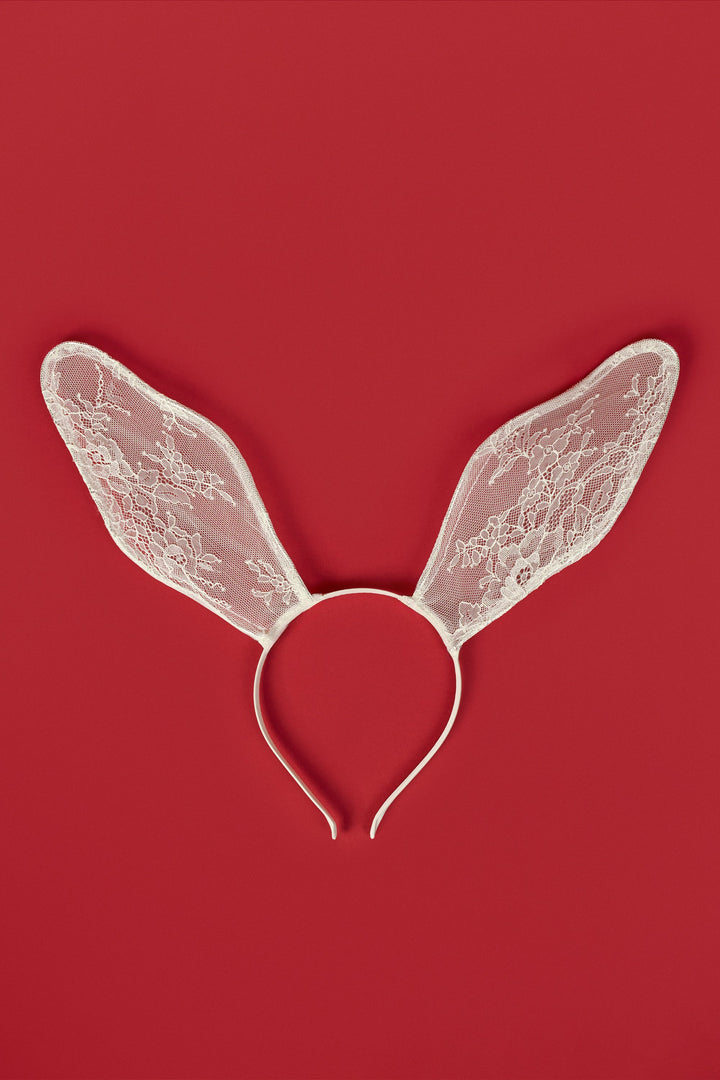 Beyaz Renkli Dantelli Tavşan Kulakları
