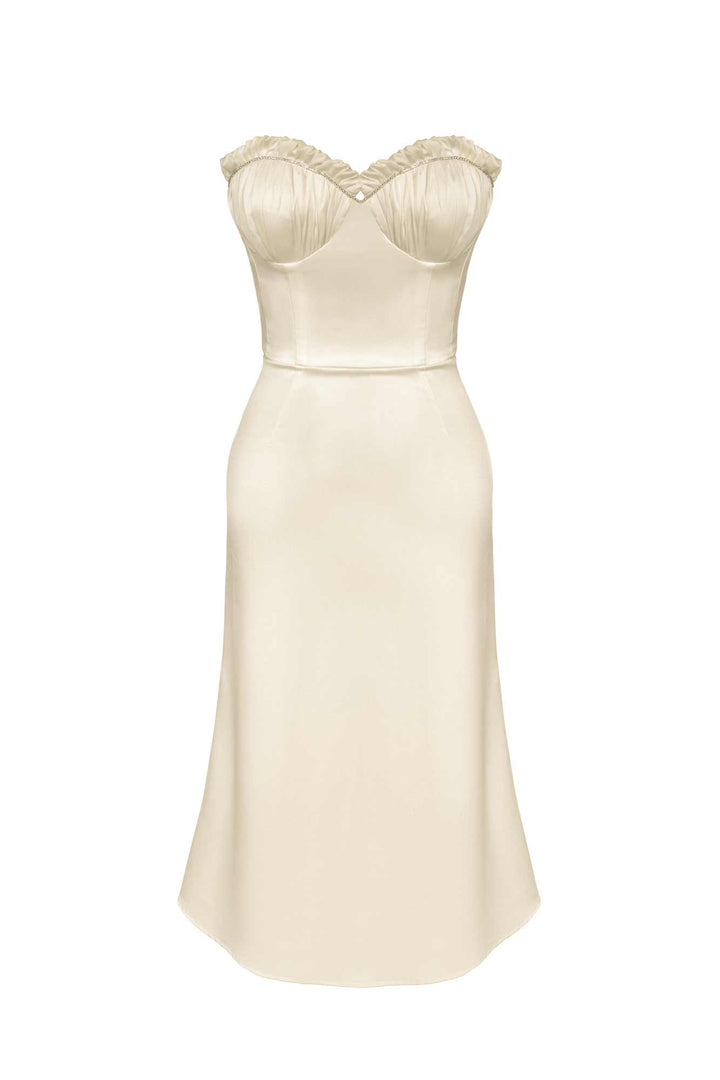 Büstiyer Drapeli Payetli Süslemeli Midi Elbise