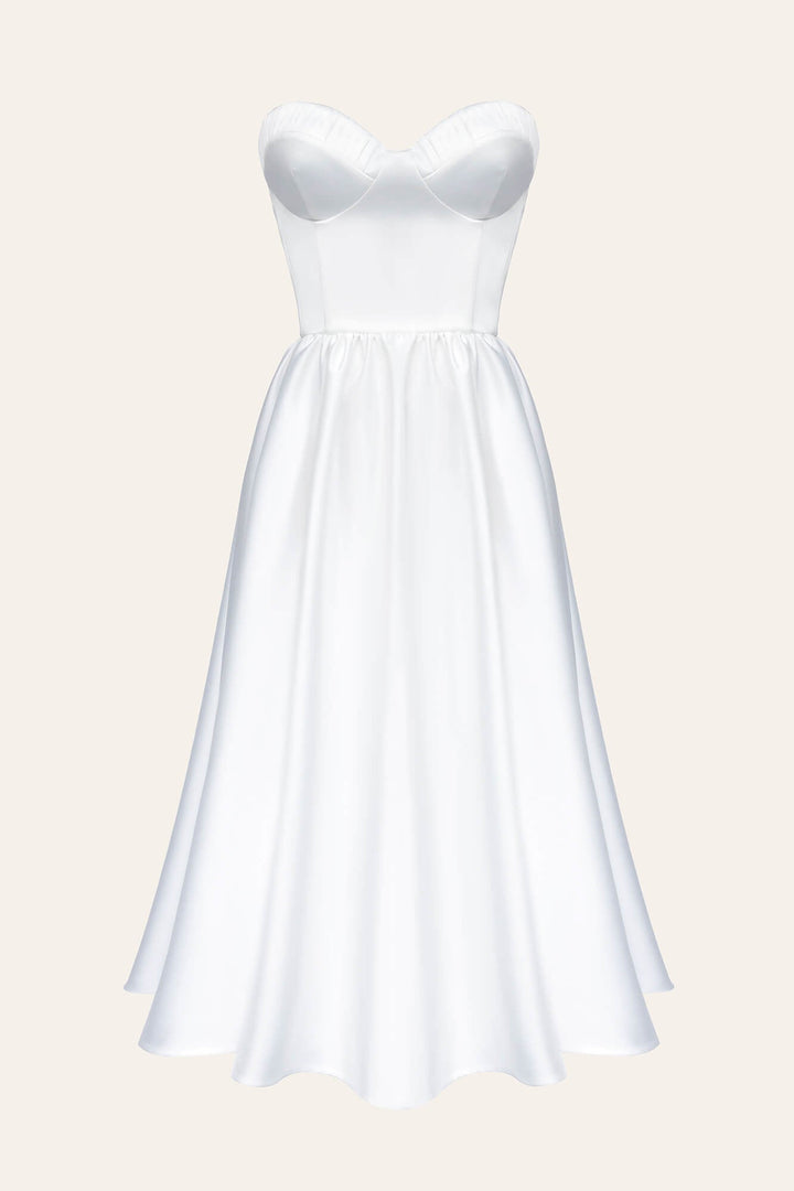 Büstiyer Pileli Göğüs Kapları Midi Elbise