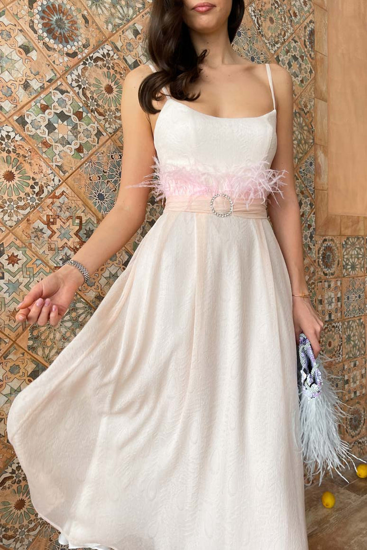 Tüy Detaylı Kemerli Büstiyer Elbise