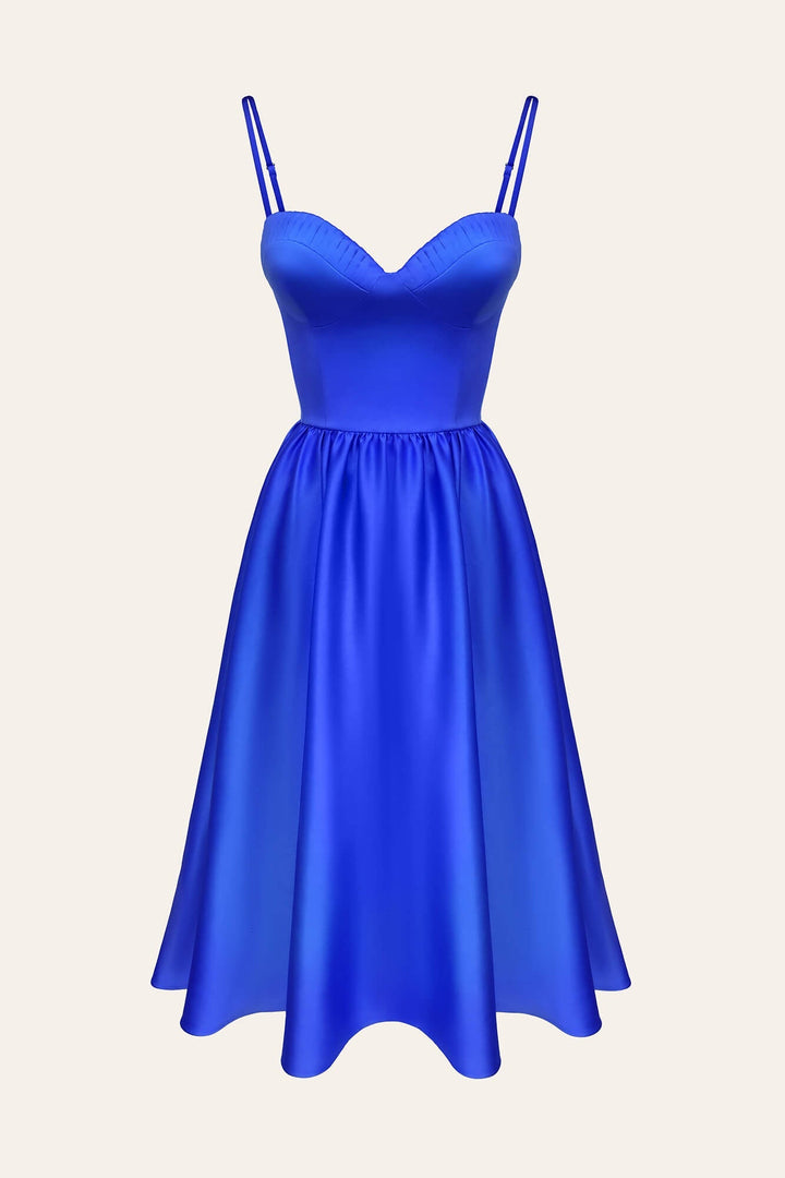 Büstiyer Pileli Göğüs Kapları Midi Elbise