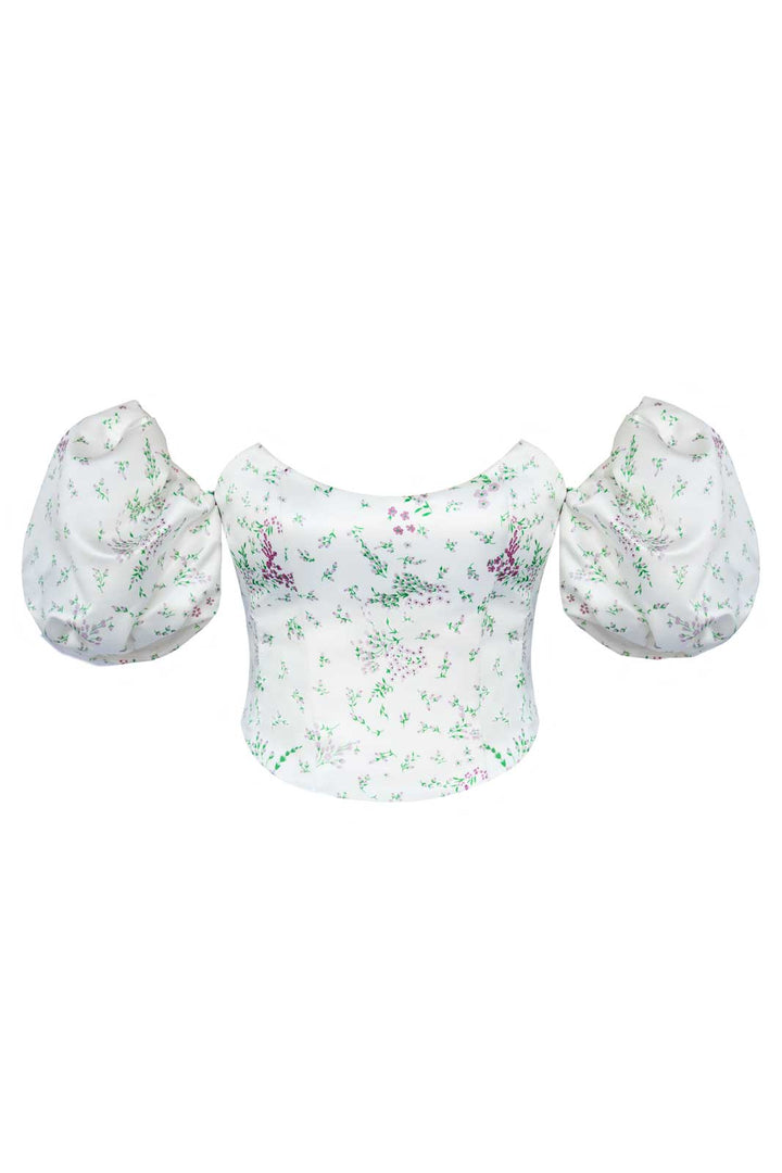 Çiçekli Kabarık Kollu Büstiyer Üst