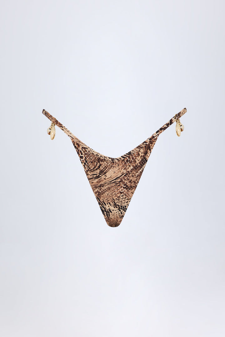 Yılan Desenli Charm Detaylı Tanga Bikini Altı