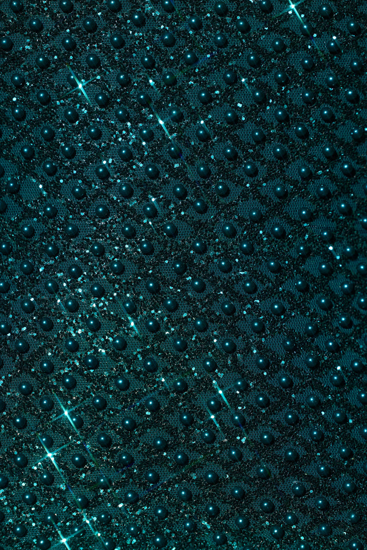 Teal Yeşili Süslemeli Balon Etek Mini Elbise