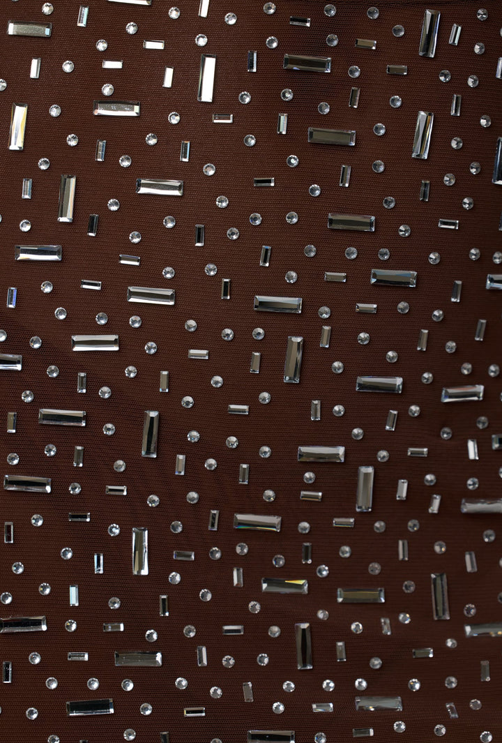 Derin Kakao Rengi Şeffaf Süslemeli Dar Mini Elbise