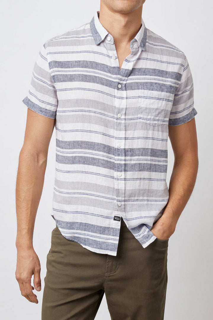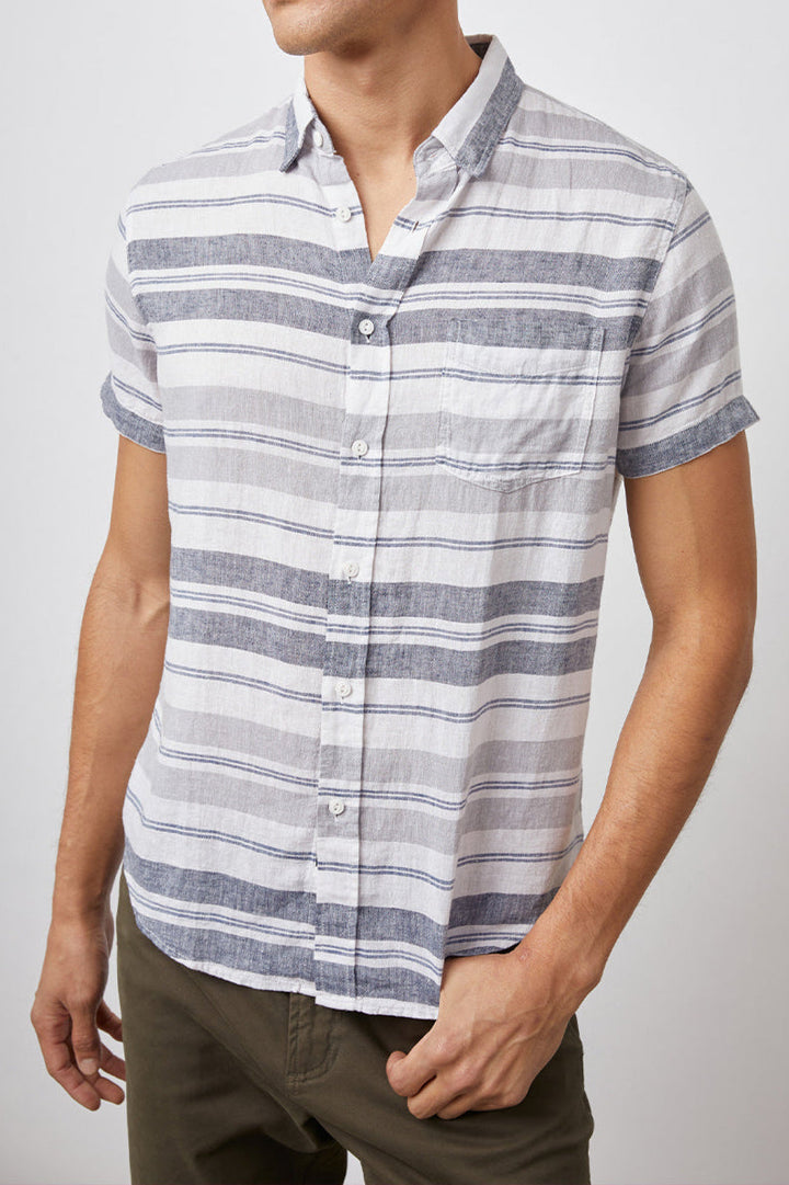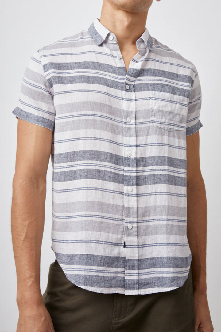 Carson Gömlek - Lacivert Gri Beyaz Çizgili