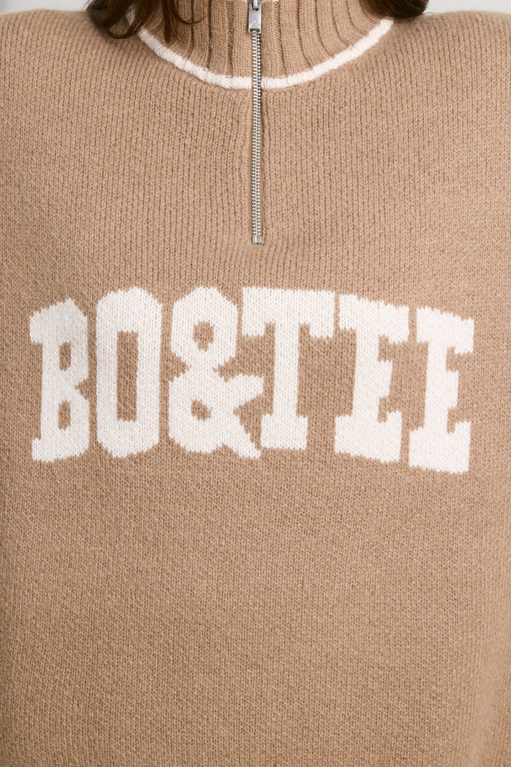 Espresso Rengi Büyük Boy Çeyrek Fermuarlı Kalın Örgü Kazak
