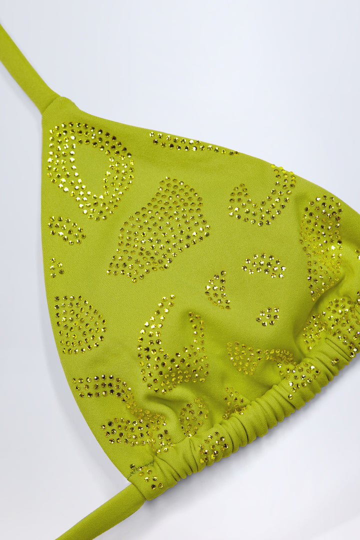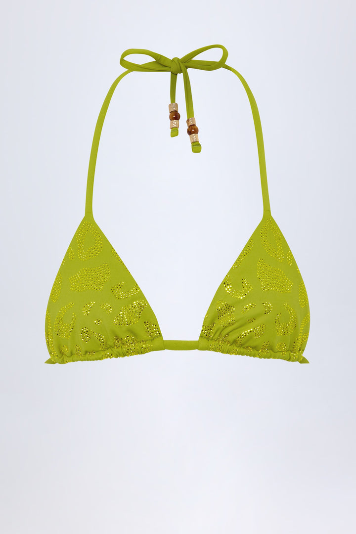 Boncuk Detaylı Zeytin Leopar Üçgen Bikini Üstü Hotfix