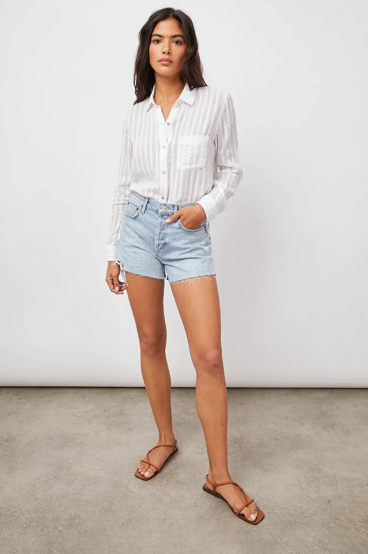 Charlı Gömlek - Beyaz Gölge Çizgili