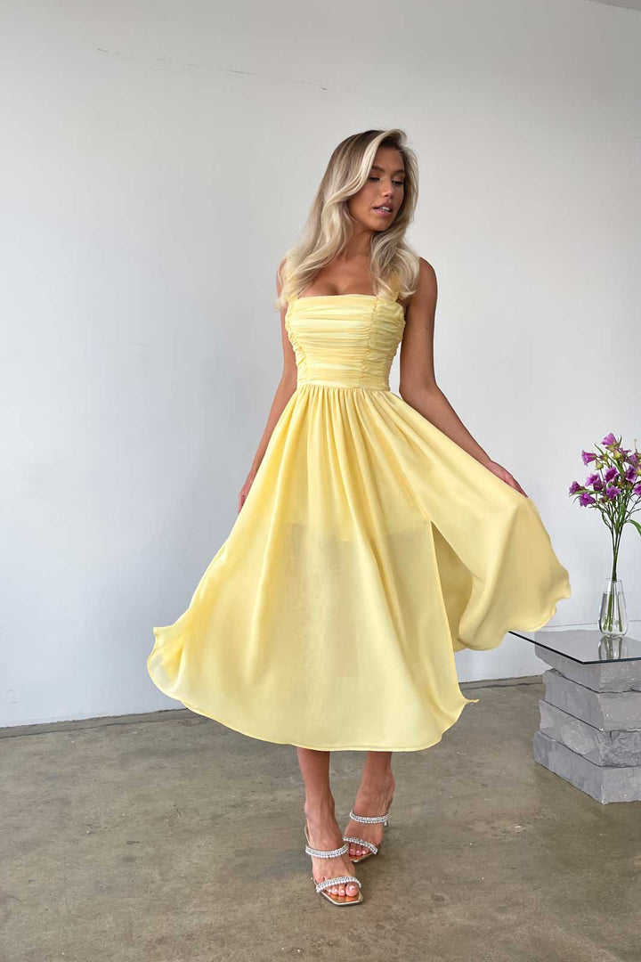 Drapeli Korseli Şifon Midi Elbise