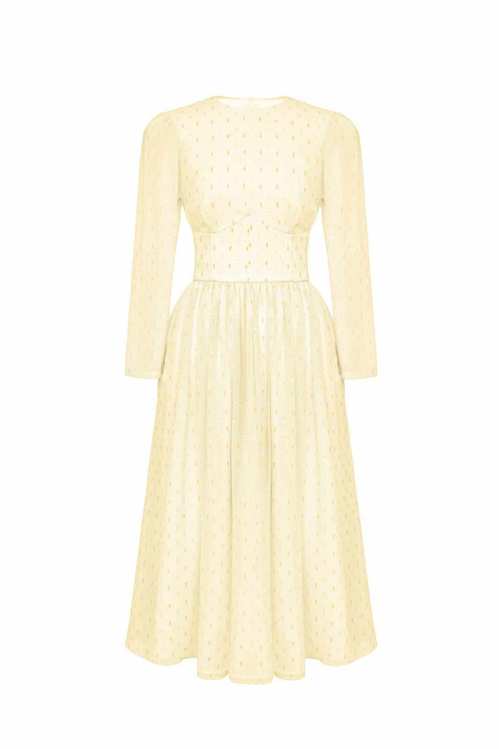 Uzun Kollu Şifon Midi Elbise