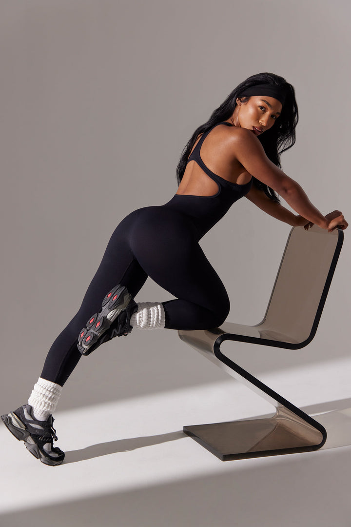 Siyah Tam Boy Kesik Sırtlı Unitard