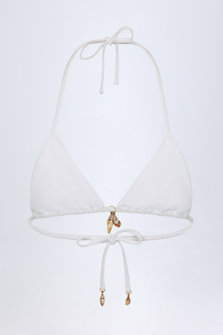Beyaz Renkli Charm Detaylı Üçgen Bikini Üstü