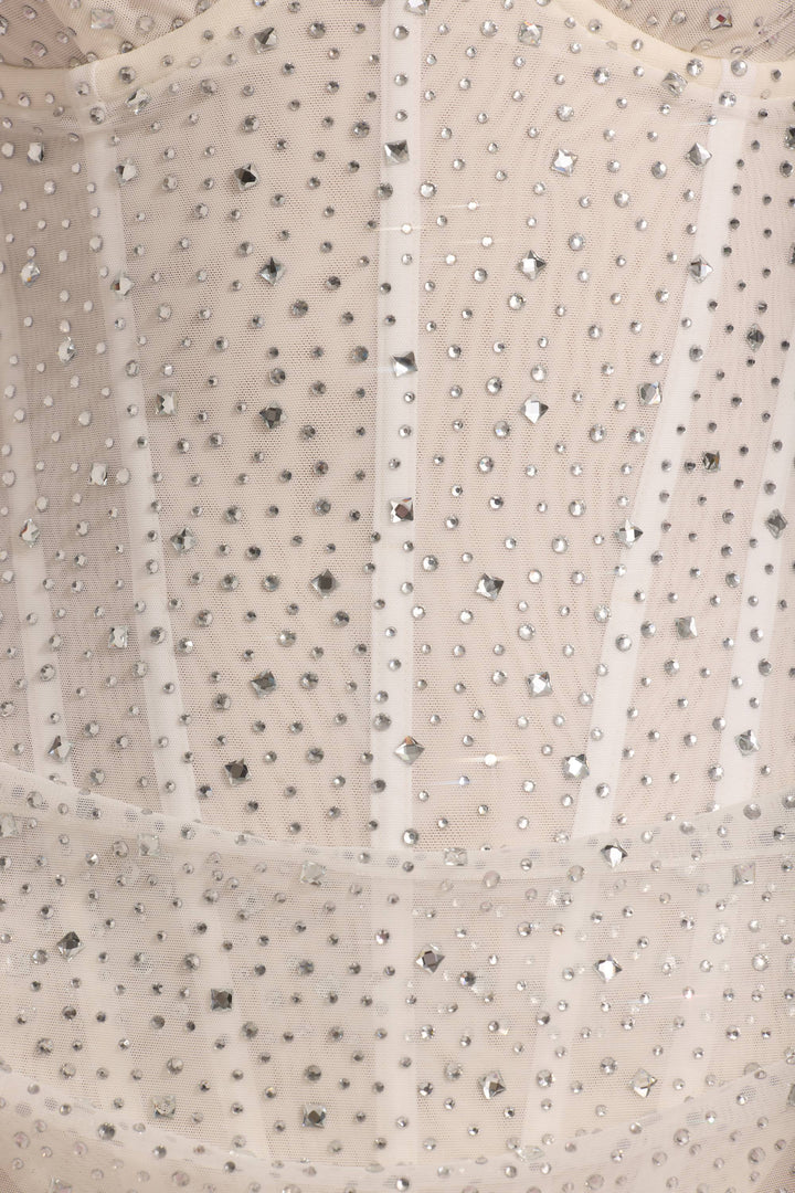 Beyaz Yarı Şeffaf Süslemeli Drapeli Korse Mini Elbise