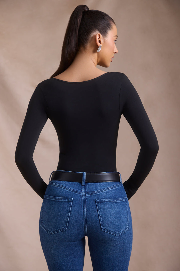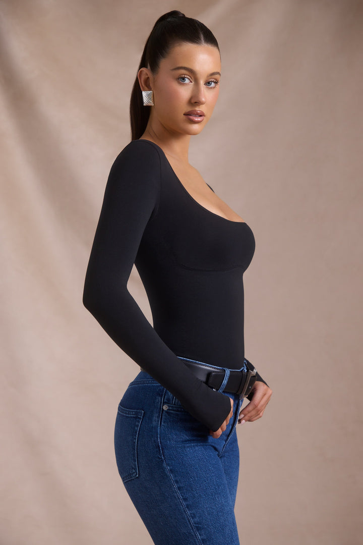 Siyah Renkli Dikişsiz Uzun Kollu Bodysuit