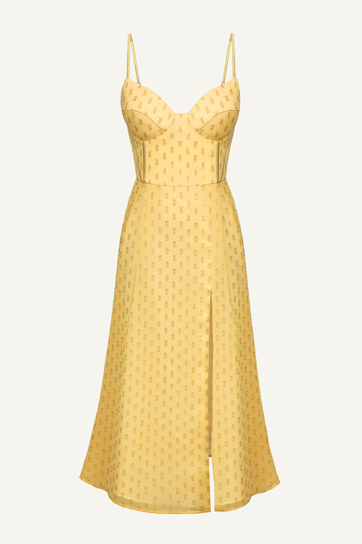 Süslemeli Korseli Yırtmaçlı Büstiyer Midi Elbise