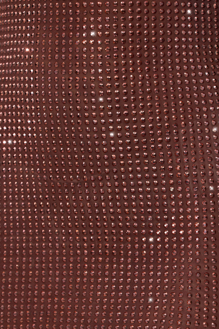 Espresso Rengi Süslemeli Yüksek Yakalı Kapüşonlu Sırt Mini Elbise