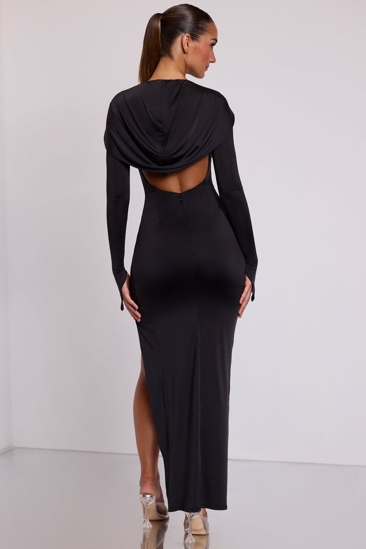 Siyah Kapüşonlu Uzun Kollu Maksi Elbise