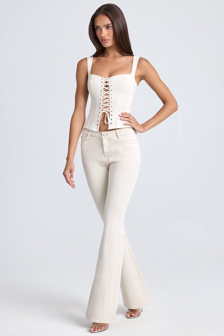 Ekru Renkli Küçük Orta Bel Kloş Pantolon