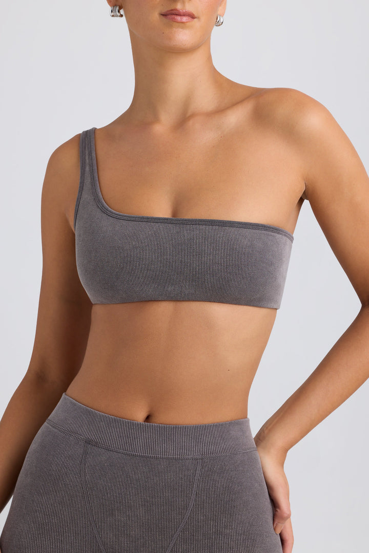 Yıkanmış Kömür Tek Omuzlu Spor Sütyeni