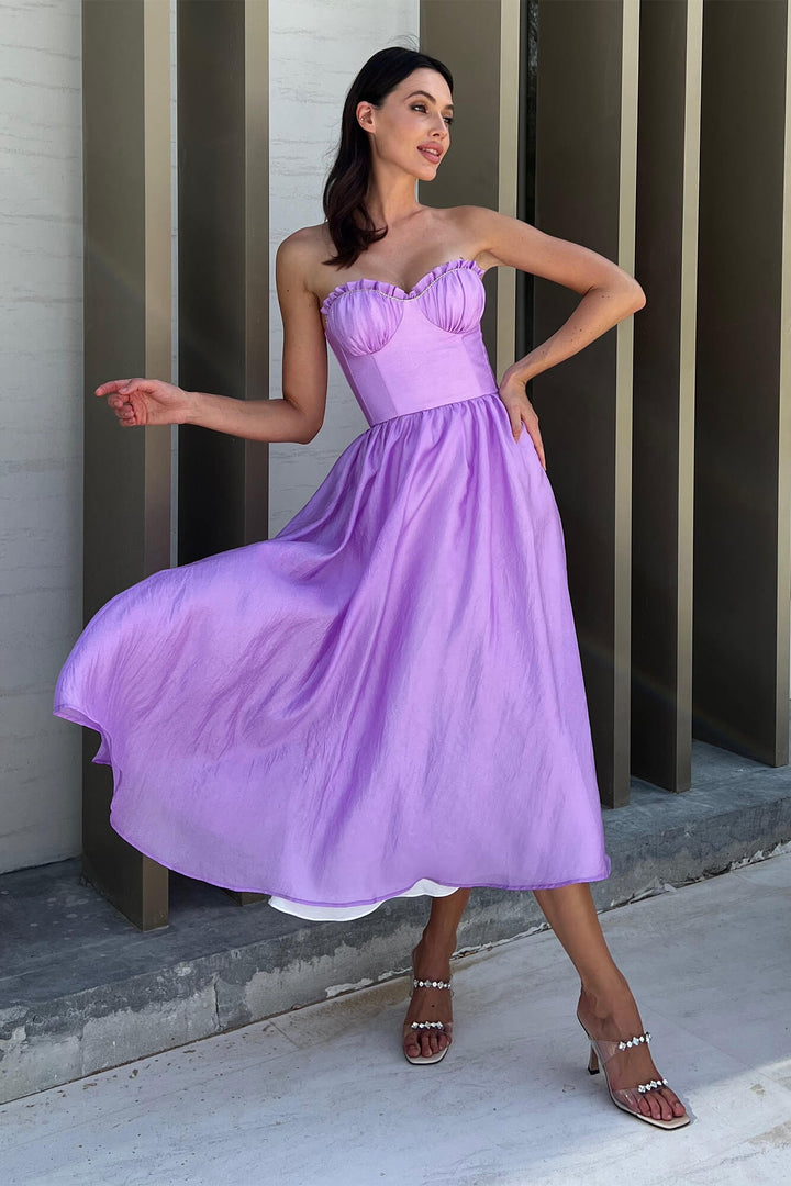 Drapeli Korseli Pileli Midi Elbise