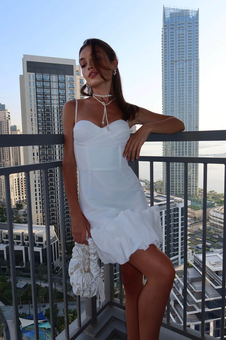 Drapeli Volanlı Mini Büstiyer Elbise