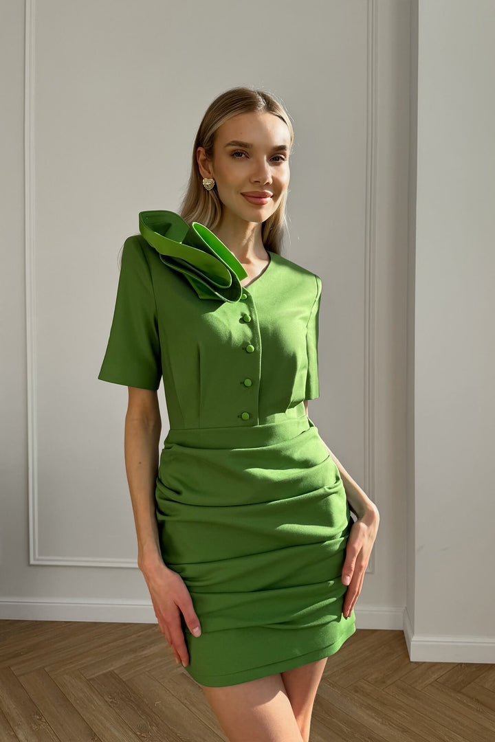 Süslü Omuz Drapeli Etek Mini Elbise