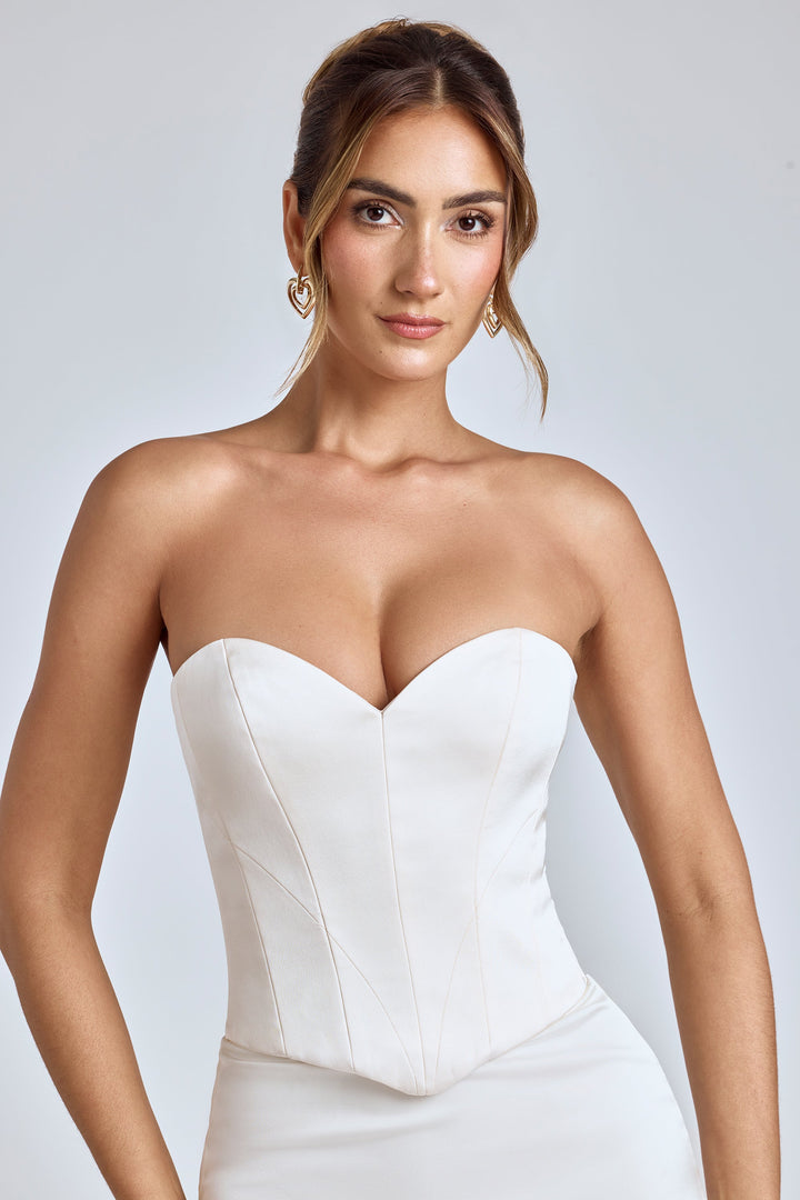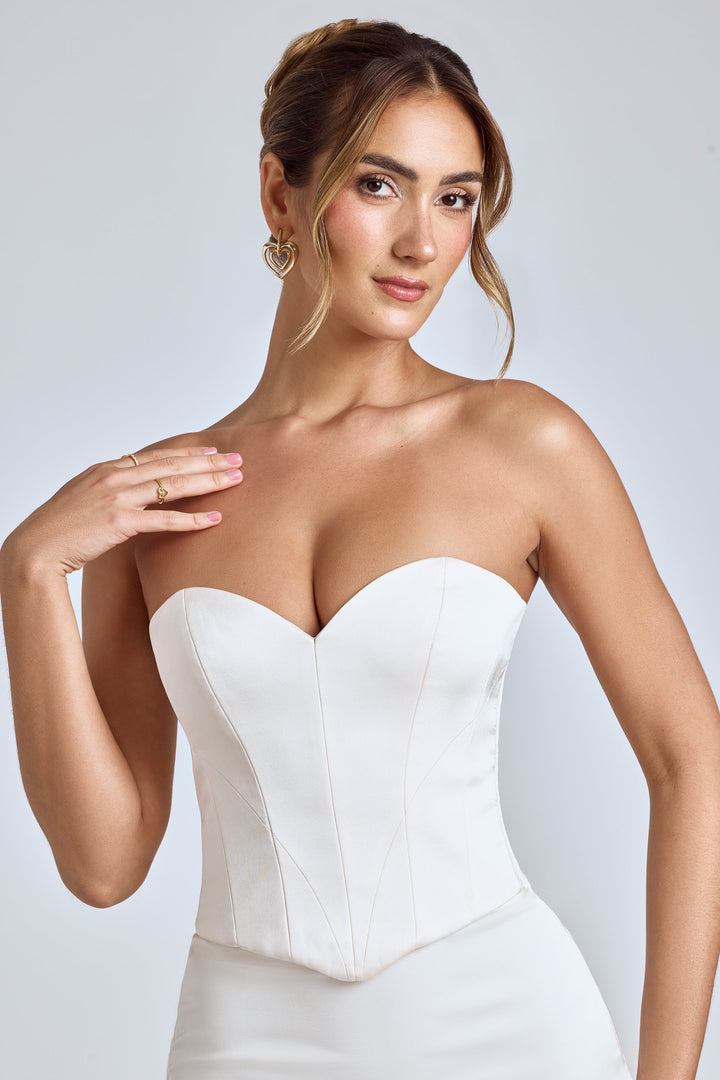 Fildişi Rengi Straplez Bağcıklı Saten Korse