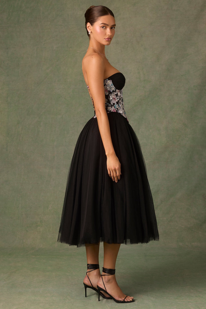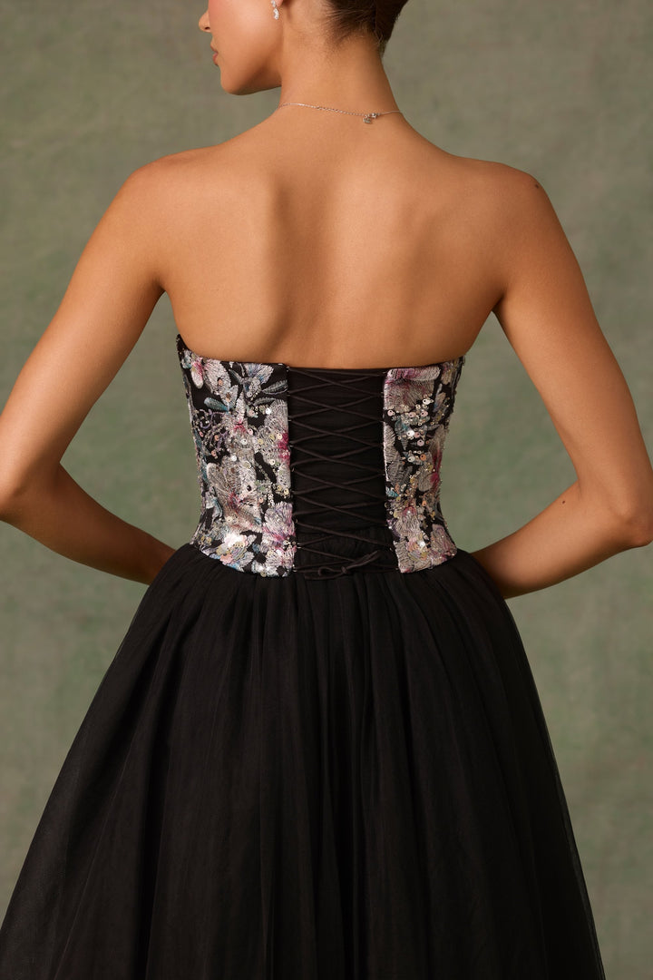 Çiçekli Siyah Süslemeli Bağcıklı Korse