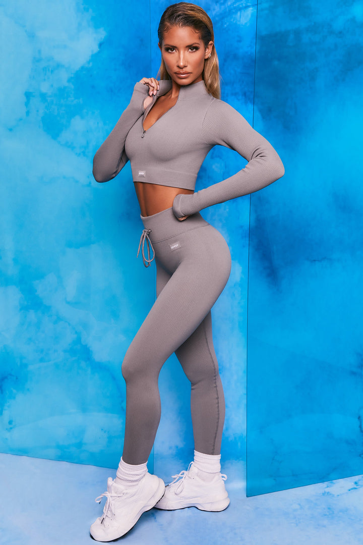 Endure Koyu Gri Uzun Kollu Yarım Fermuarlı Kırpılmış Üst